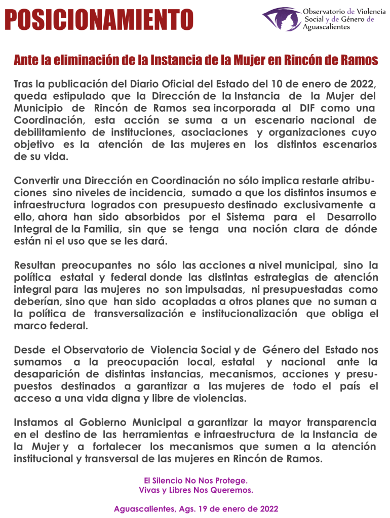 Este panorama general sobre la prevalencia delictiva dimensiona lo que el Observatorio de Violencia Social y de Género de Aguascalientes ha denunciado continuamente: